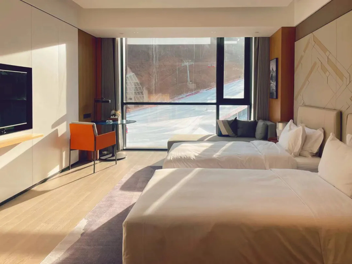 高强度训练背后,高质量的休息与恢复是提升训练成效的关键。为此,雪场精心筹备运动员专属套房,将舒适感与便捷性充分融合,为运动员打造静谧、舒适的休憩空间,助力其快速恢复体能,以最佳状态投入每日训练。
