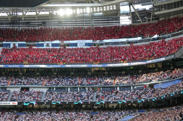 自当地时间中午起,马德里的地标建筑太阳门广场上就聚集了数千名柏林联盟远征球迷,他们前赴后继涌向新伯纳乌球场,集体高举手臂放声歌唱。一位柏林联盟死忠接受笔者采访时表示,柏林联盟这支平民球队不似皇马、拜仁这般巨星云集,但他们作为人民的球队,足以与最强大的力量抗衡。